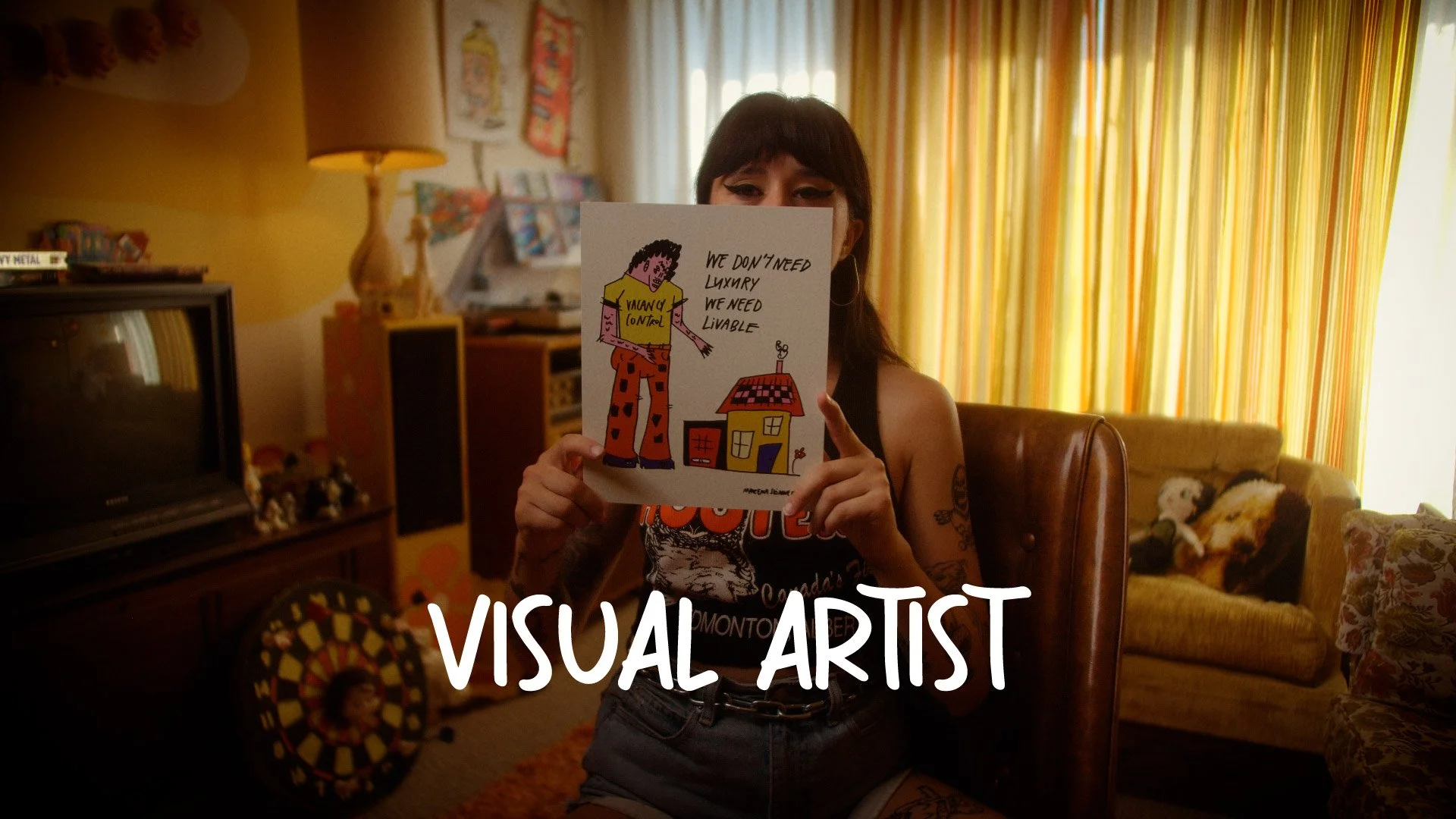 From a creative and cinematography standpoint each film was shot to visually complement the personality and style of the artist. For example, one artist; Marena, had designed her workspace to feel like the set of a 70's talk show. To complement her personal style, we shot her interview using vintage lenses in a 4:3 aspect ratio.