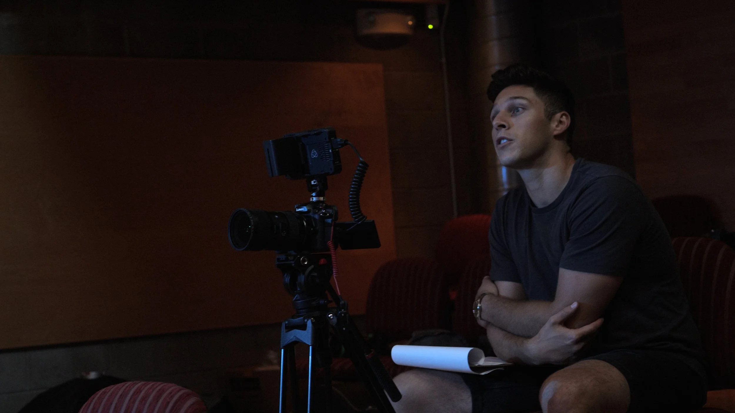 Gabe Roy, directing an interview with a musician as part of a documentary production